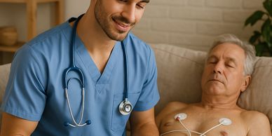 Our nursing team provides clinical care such as catheterization, Ryle’s tube insertion, nebulization, PICC line insertion, ECG, and wound dressing — at home and in our clinic with precision and patient comfort. These services are especially beneficial as part of our elderly care support.
